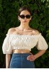 Драпированный кроп-топ с открытыми плечами.